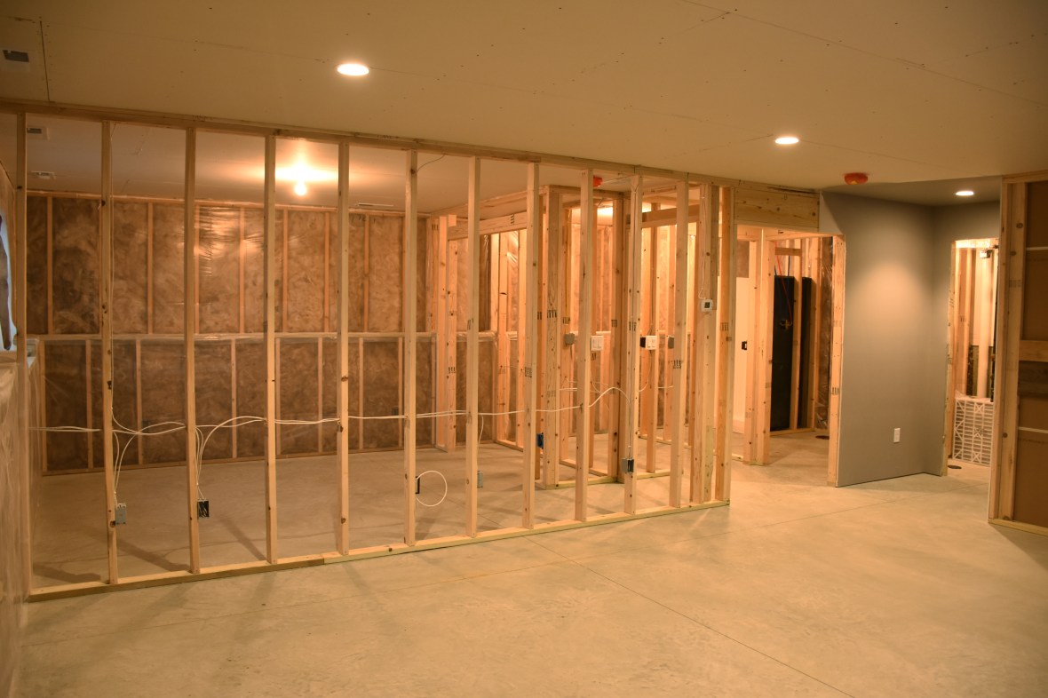 Semi finished basement has framing, hvac, plumbing and electrical ready for finishing.